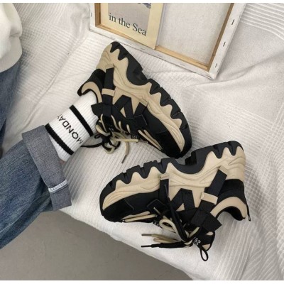 Модні жіночі масивні кросівки на товстій високій підошві - чорні з білими