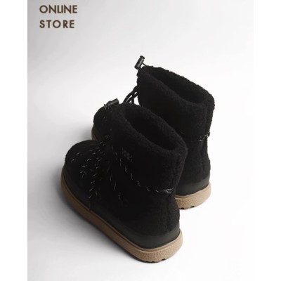 Жіночі зимові плюшеві черевики місяцеходи з хутром на високій підошві - чорні