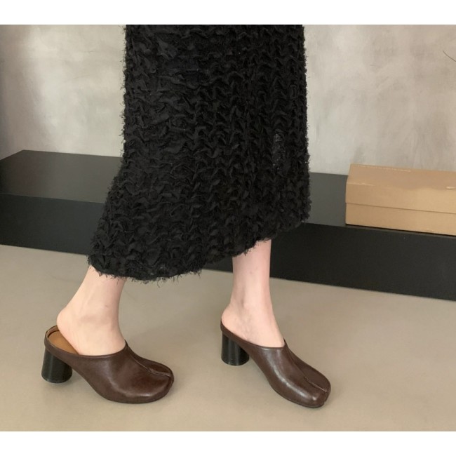 Коричневые мюли на каблуке с раздвоенным носом таби