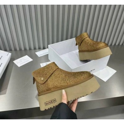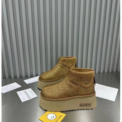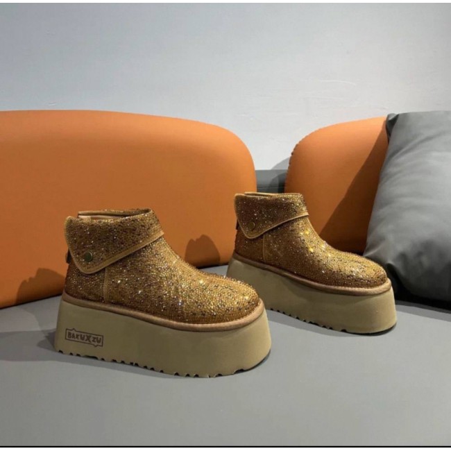 Женские полуботинки - рыжие валенки угги с подворотом на очень высокой подошве платформе и блестками